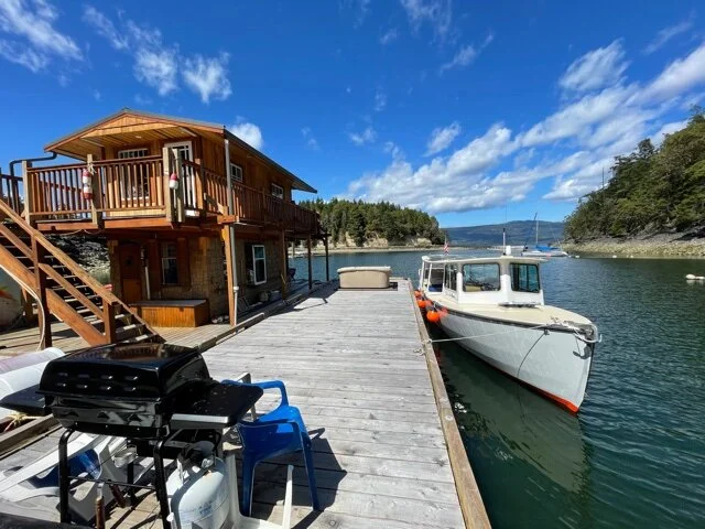 “Today after leaving Namu, we went 27 miles to Bella Bella and then 12 miles further. We passed the Hakai Institute, which I wanted to visit but couldn’t due to COVID restrictions. Likewise the culture in Bella Bella. Around 1pm we docked at the Shearwater Marina in Bella Bella to stock up on water and other provisions. And we had a take-out meal from the restaurant! We would have liked to visit, eat in the restaurant, have a shower and use the laundromat. This area has lots to offer; if I come back I plan to stay days instead of 2 hours. Today was light rain, heavy rain, and threatening rain. The overcast keeps the battery low and slows our travel. However passing Bella Bella was another big milestone! Ahead are less people, less places with cellular, and more immersion in forest and water passages.